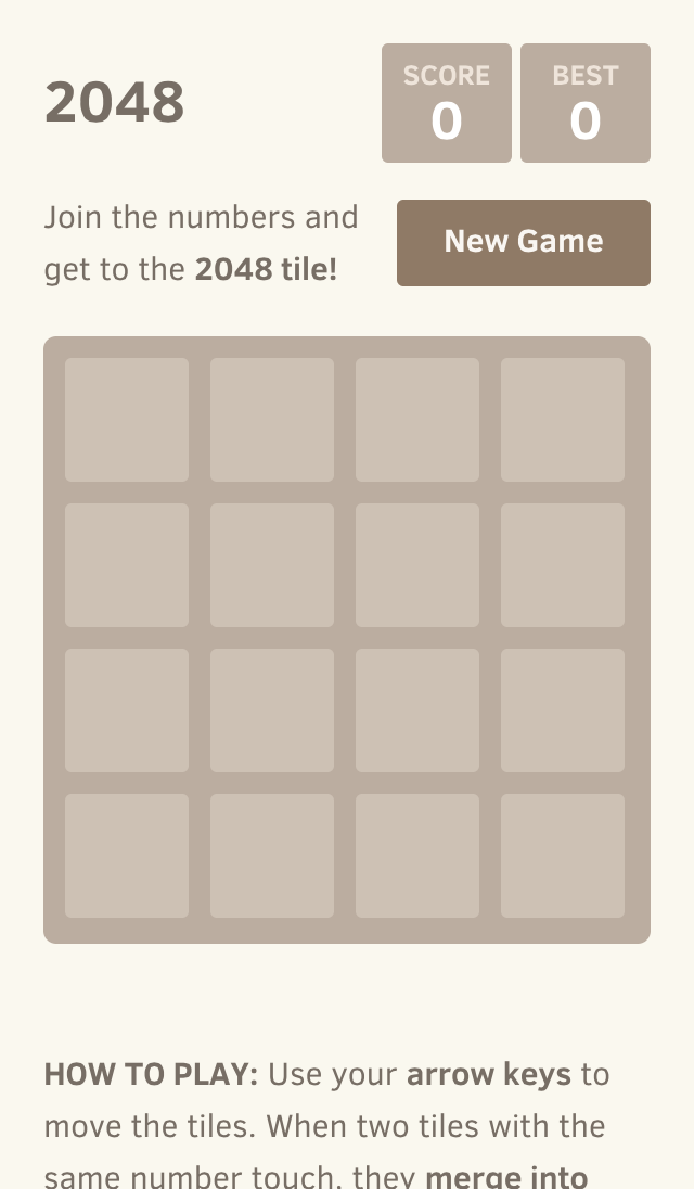 游戏玩法:电脑: 使用 方向键 移动方块。当两个相同数字的方块相碰时,它们会 合并成一个!手机:在屏幕上滑动以移动方块。当两个相同数字的方块相碰时,它们会 合并成一个!